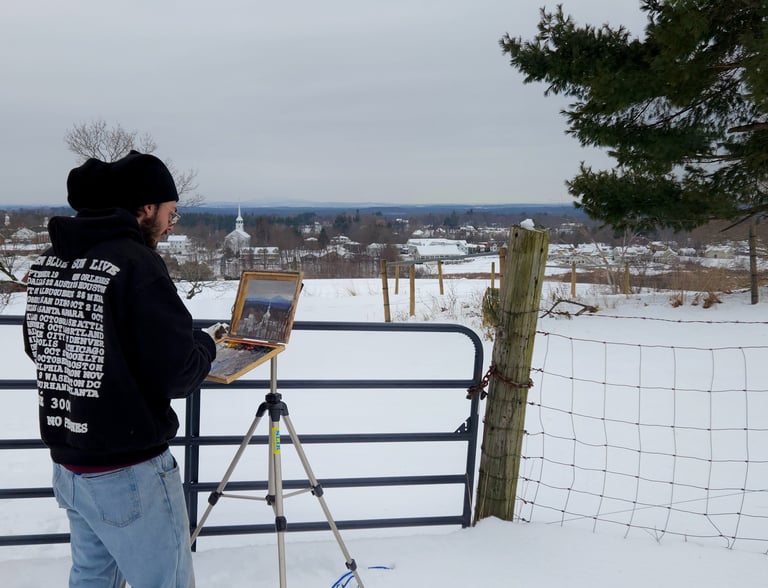 Whether I’m in a blizzard, or getting eaten alive by mosquitos on a summer night, I experience the most peace when I am out painting. There’s an urgency that accompanies painting in nature - An urgency that breeds mistakes, redemption, and invention.